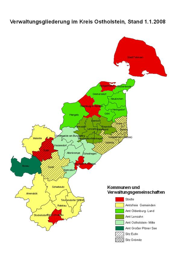 Kreiskarte mit Gemeindegrenzen seit 01/ 2008