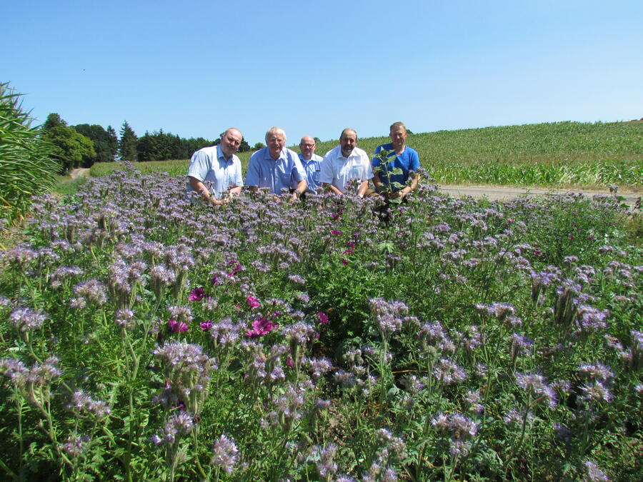 Frank Schumacher vom Hof Radlandsichten ist einer von 74 Landwirten aus dem gesamten Kreisgebiet, die ihre Flächen für die Aussaat dieser insektenfreundlichen Blütenmischung zur Verfügung stellten. Diese Maßnahme war zunächst auf ein Jahr befristet. Dank der guten und erfolgreichen Zusammenarbeit mit dem Kreisbauernverband und den Landwirten sei es aber durchaus vorstellbar, dieses Projekt im nächsten Jahr zu wiederholen, so Landrat Sager.