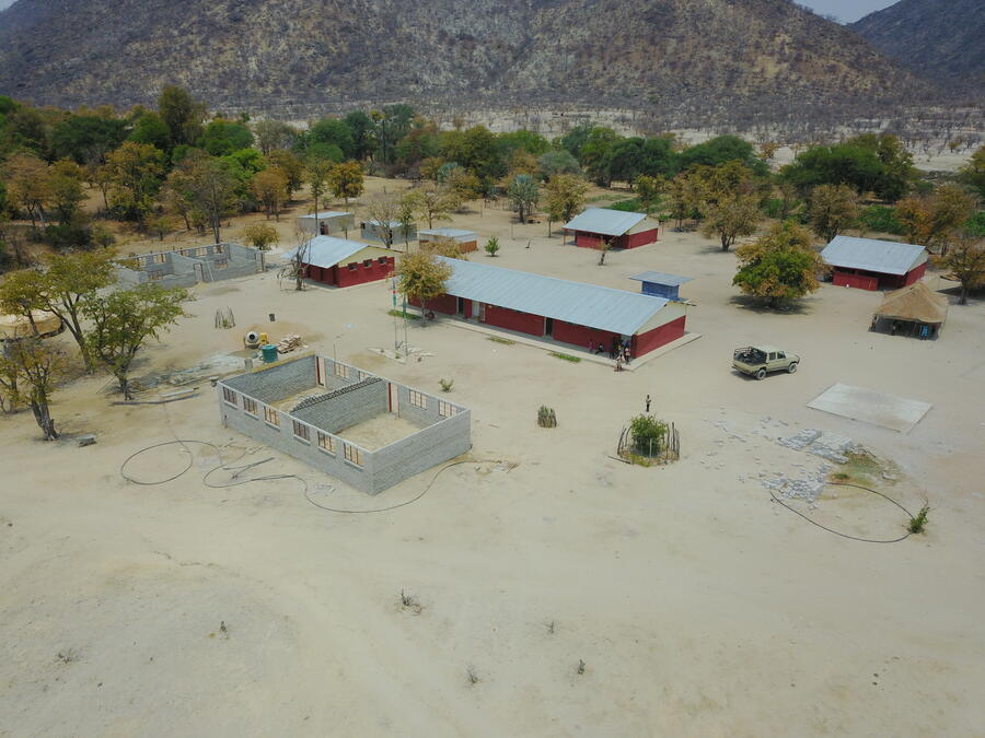 Das Dorf liegt in einer bergigen Region im Norden Namibias. Dort werden derzeit 128 Kinder in den Klassen 0-7 von sieben Lehrkräften unterrichtet. Die Schule braucht dringend neue Klassenräume. Dadurch können die Wellblechhütten zu Schlafräumen umfunktioniert werden. Das Einzugsgebiet ist sehr groß. Viele Kinder müssen an der Schule schlafen und essen, weil ein Schulweg von bis zu 50 km zu Fuß täglich nicht zu schaffen ist.