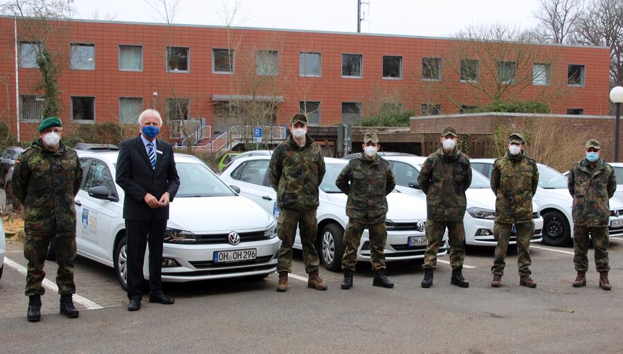 Martin Stellberger, Verbindungskommandeur für die zivilmilitärische Zusammenarbeit im Kreis Ostholstein, übergab am 1. März gemeinsam mit einigen Soldaten aus Todendorf die Dienstwagen, die der Kreis zur Verfügung gestellt hatte. „Neben dem Einsatz unserer Kräfte in den Impfzentren des Kreises, konnten wir auch bei der Durchführung der Antigen-Schnelltests in den Einrichtungen unterstützen und damit auch zum Schutz der Bewohner einen wichtigen Beitrag leisten. In der Krise arbeiten wir Hand in Hand und können uns aufeinander verlassen“, fasst Stellberger das Engagement der Bundeswehr zusammen.