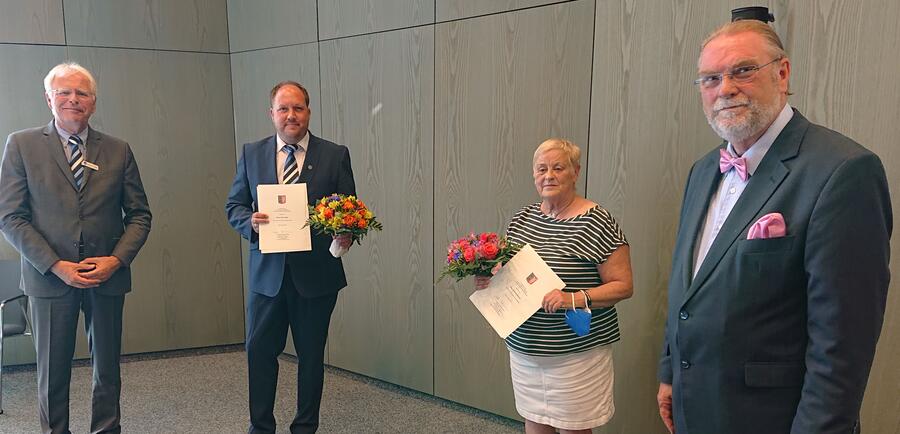 Geehrt wurden Timo Gaarz (Kreistagsabgeordneter, 1. stellvertretender des Landrats, Stadtvertreter) und Gabriele Braune (Kreistagsabgeordnete und Gemeindevertreterin).