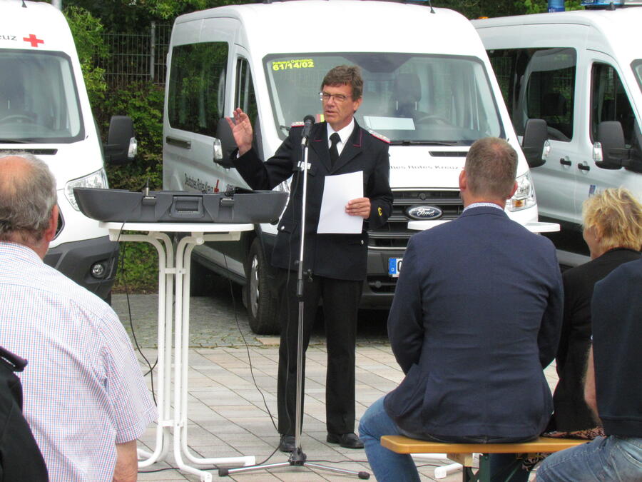 Unter der Kategorie „Kleinfahrzeuge“ übergab Landrat Sager insgesamt vier Mannschaftstransportwagen, es handelt sich jeweils einen Ford Transit: