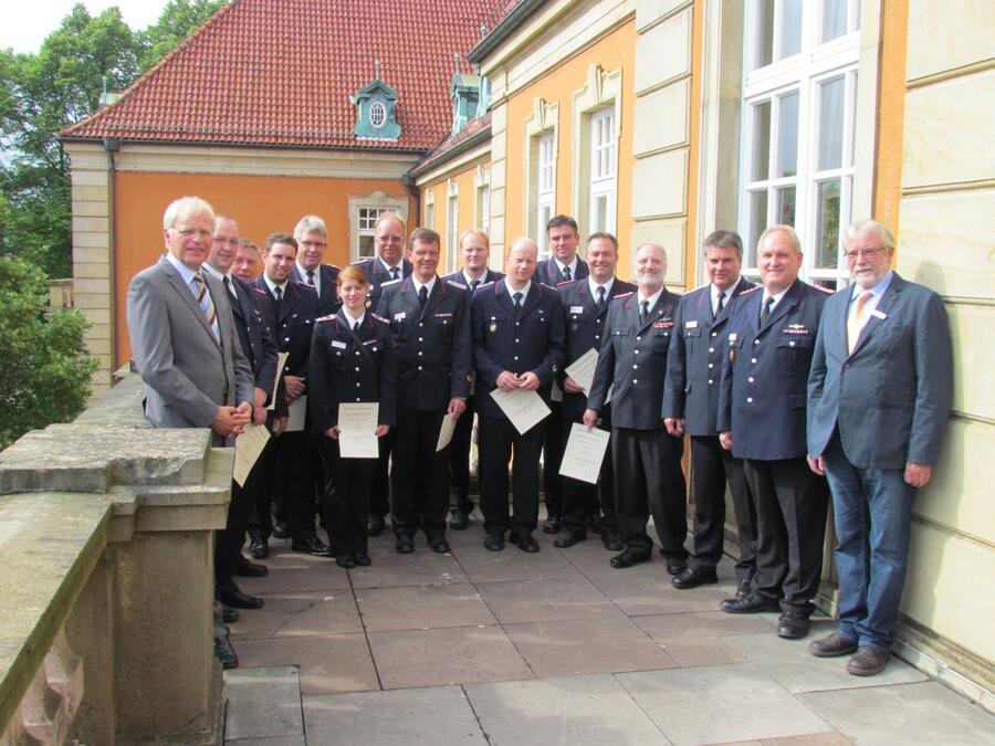 Eutin. Landrat Reinhard Sager verlieh heute (14. Juli) im Rahmen einer Feierstunde 17 Feuerwehrleuten aus Ostholstein den Fluthelferorden des Landes Sachsen-Anhalt für ihren freiwilligen Einsatz beim Elbehochwasser 2013. Die Feuerwehrleute gehören zur Technischen Einsatzleitung Ostholstein (TEL) und waren im Rahmen eines Einsatzes des Führungskräftepools Schleswig-Holstein in Magdeburg und Stendal im Einsatz. Sager lobte die Helfer für ihre spontane Bereitschaft, die Menschen an der Elbe in ihrer Notlage zu unterstützen. „Ihnen wurde bei diesen beiden Einsätzen alles abverlangt. Sie können zu Recht stolz auf Ihre Leistung sein. Mit Ihrem Einsatz haben Sie gezeigt, wie wichtig die ehrenamtliche Arbeit für unsere Gesellschaft ist.“ Er bedankte sich zugleich bei den Familien und Arbeitgebern der Einsatzkräfte für ihre Unterstützung.