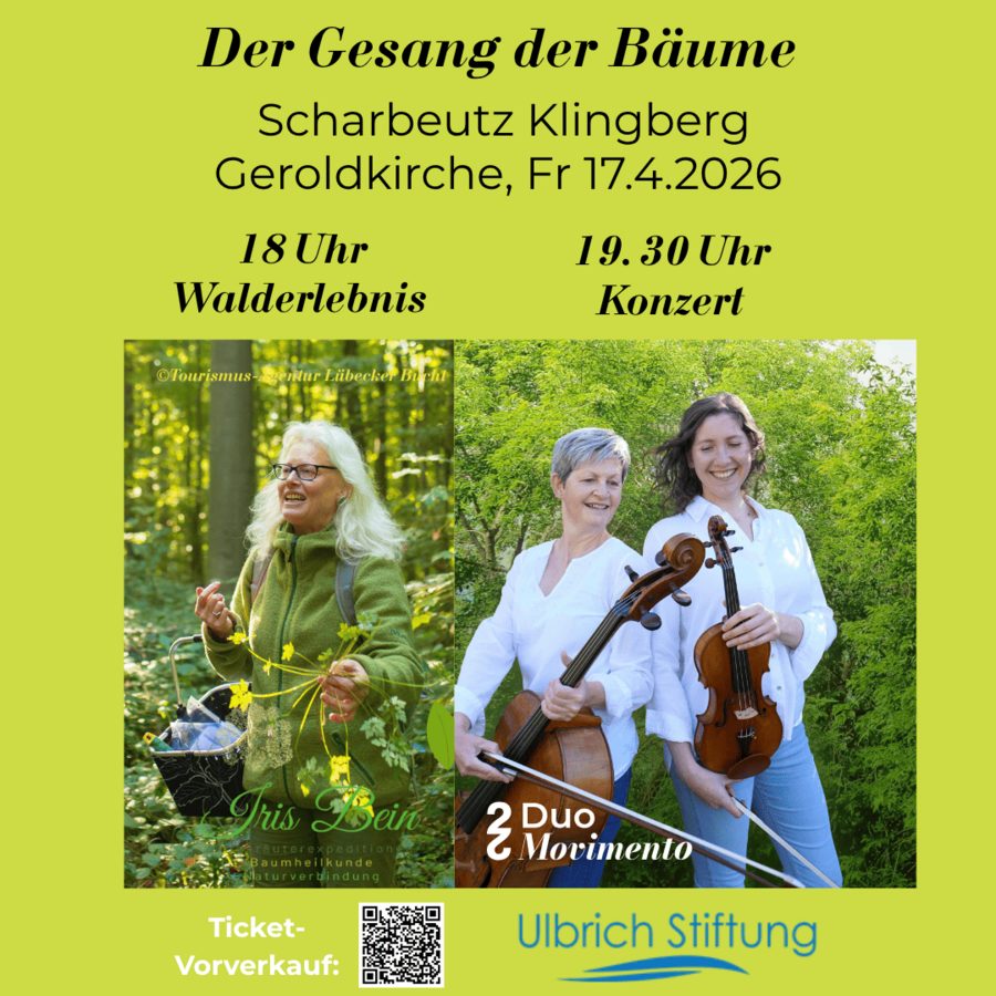 Als Einstieg lädt um 18 Uhr die zertifizierte Natur- und Landschaftsführerin Iris Bein dazu ein, den Wald am höchsten Punkt der Gemeinde Scharbeutz zu erkunden. Die Natur steht in den Startlöchern und die ersten Blätter entfalten sich bereits voller Energie! Auf diesem stimmungsvollen Spaziergang spüren die Teilnehmenden die Kraft der Bäume, hören Wissenswertes über ihre Wirkweisen, lauschen den Geschichten und Mythen dieser Lebensbegleiter und kosten von jungen Blättern und Knospen.